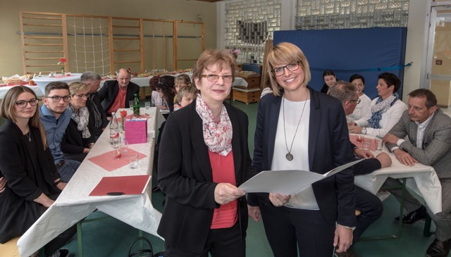 Am Freitag, 12.4.2019, wurde Frau Merkler im Rahmen einer kleinen Feier offiziell als Schulleiterin der GS Lonnig in ihr Amt eingeführt. Nach Grußworten von Frau Regierungsschuldirektorin Schwickert, von Verbandbürgermeister Mumm, Ortbürgermeister Müller, Frau Neumeister (Schulelternsprecherin) und Frau Müller (ÖPR) bedankte sich Frau Merkler für die herzlichen Worte der Redner, die gute Zusammenarbeit des gesamten Schulteams und die Unterstützung durch ihre Familie.