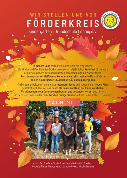 Der Förderkreis wurde vor vielen Jahren von engagierten Eltern gegründet. Seitdem unterstützen viele Eltern, Großeltern, Ehemalige sowie Lonniger Bürger aktiv oder finanziell das Vereinsleben. Zum Beispiel bei unserem alljährlichen Waldfest oder unserer beliebten Nikolausaktion. Wir lassen den Nikolaus in Ihre Häuser kommen!