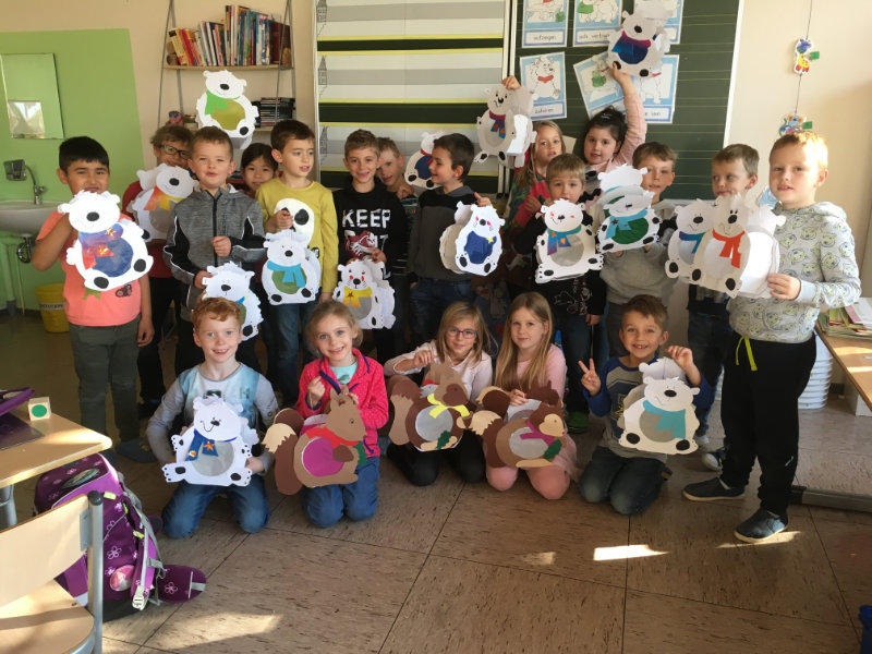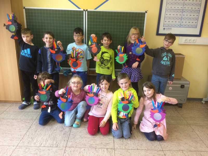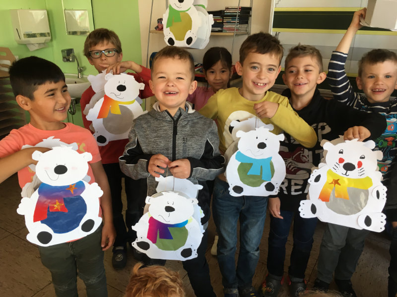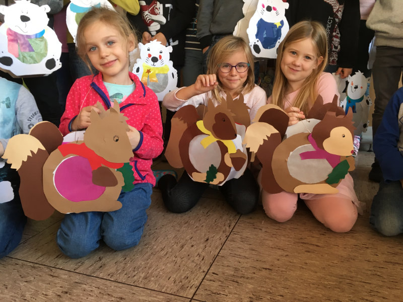 Die Kinder des 1.&2.Schuljahres bastelten auch in diesem Jahr wieder fleißig Laternen. Die Patenkinder standen zur Seite und halfen den Kindern dabei. Mit diesen Laternen strahlen die Kinder an St. Martin dann wirklich mit den Sternen um die Wette.
