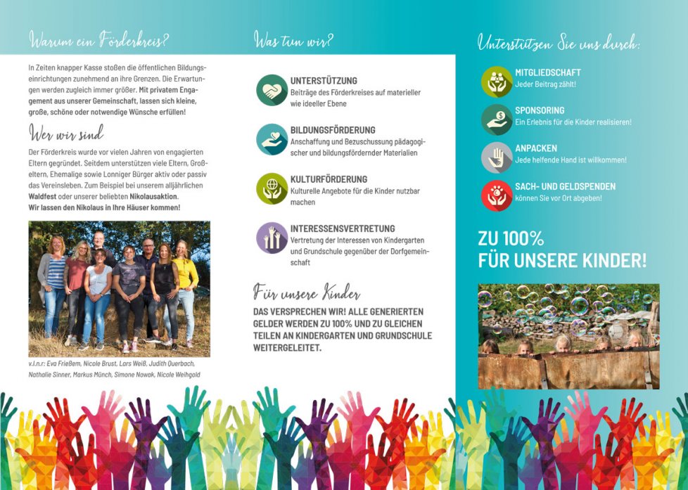 Der Förderkreis wurde vor vielen Jahren von engagierten Eltern gegründet. Seitdem unterstützen viele Eltern, Großeltern, Ehemalige sowie Lonniger Bürger aktiv oder finanziell das Vereinsleben. Zum Beispiel bei unserem alljährlichen Waldfest oder unserer beliebten Nikolausaktion. Wir lassen den Nikolaus in Ihre Häuser kommen!