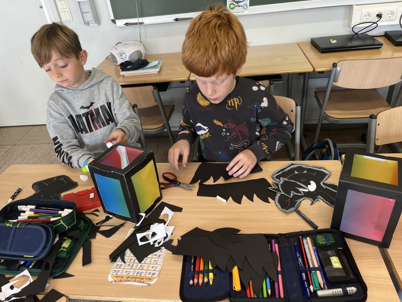Die Kinder des 2.Schuljahres bastelten auch in diesem Jahr wieder fleißig Laternen. Mit diesen Laternen strahlen die Kinder an St. Martin dann wirklich mit den Sternen um die Wette.